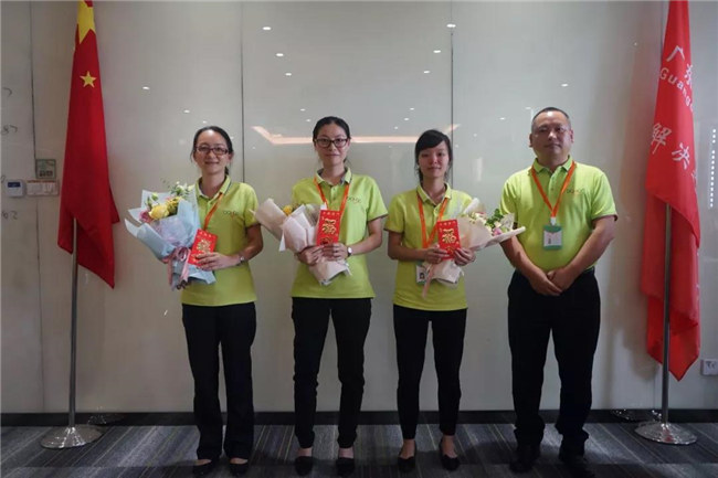 新任命為技術部工藝技術組組長-鄧建明(賴道理代)、技術部設備技術組組長-侯令、AOC力聯思產品經理-方紹林、采購部主管-成雯婷。(圖片從左到右)